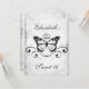 16 doces um convite bithday que caracteriza um design elegante que caracteriza uma borboleta de monarca esboçada preto com uma coroa que paira, sob um design simples do redemoinho com os pontos em torno da imagem. tudo em um fundo branco e cinzento do grungey. Este é 100% fez por mim, nenhum clipart usado