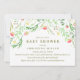 Um design de convite elegante para chá de fraldas com um quadro botânico de cor d'água em tons cor d'água rosa e verdes. Este item faz parte de uma coleção. Visite nossa loja para outros itens correspondentes. Para solicitação personalizada, escreva para citronelladesign@gmail.com