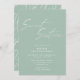 Convites bonito e simplistas de 16.º aniversário com o título "Doce Dezesseis", em letra branca, num fundo verde pastel de leite. O verso apresenta um padrão da palavra "dezesseis" na escrita de coordenação. O padrão do lado inverso, assim como a cor do plano de fundo, podem ser alterados com a ferramenta design.