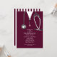 Creative medical school graduation party invites featuring maroon hospital scrubs and stethoscope. Edit text to create unique doctor party invitation.