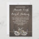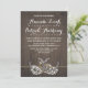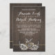 Chamadas de Festa de noivado Rústica de Fúria do Bebê de Fúria - apresenta um fundo de madeira rústica com hálito de bebê, ferraduras em forma de ferradura e um nó solto de corda em forma de coração. Consulte a coleção de correspondência de cheios neste design nesta página.