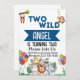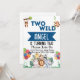 Personalize estes convites de aniversário de dois animais selvagens como você quiser, adicione o nome do seu filho, idade, data, endereço e mais detalhes.