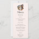 Cartão de menu com uma imagem com dois cavalos. Vestindo bandas decorativas. Cercados por penas e folhagem.