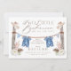 Convide seus entes queridos para celebrar a chegada iminente de seus dois pequenos buckaroos com nosso belo e elegante convite de baby shower western para gêmeos meninos no estilo boho Wild West. Este convite requintado combina o charme do Wild West com a elegância do design boho, criando uma maneira verdadeiramente única e memorável de anunciar seu baby shower. No centro do design do nosso convite estão belos postes de madeira desenhados à mão e corda com roupas de cowboy e uma bandeira monograma personalizada pendurada na linha de corda. Ao redor dos postes de madeira estão nossas belas flores de aquarela desenhadas à mão. Essas flores delicadas enquadram o design central, adicionando um toque de beleza natural e elegância ao convite. Detalhes em renda. Personalize o convite com todos os detalhes importantes do seu baby shower, incluindo data, hora, local e monograma dos gêmeos. Ilustrações e design de aquarela desenhados à