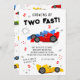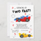Dois carros de corrida de crianças de segundo aniversário rápido O convite apresenta carros de corrida bonitos e coloridos com o texto "Duas rápidas" no moderno script de tipografia negra acentuado com o número 2 e rabiscos. Perfeito para as crianças na segunda festa de aniversário. Envie o e-mail ou simplesmente baixe o convite digital compartilhável para download. Projetado pelo Evco Studio. Para obter informações sobre a coordenação de itens, consulte www.zazzle.com/store/evcostudio