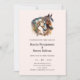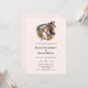 Convite de casamento com uma imagem com um par de cavalos. Usando faixas decorativas para a cabeça. Rodeado por penas e folhagens.