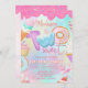 Um convite delicioso apresenta rosquinhas e sobremesas deliciosas com glacé de cor d'água pastel e muitas rosquinhas coloridas do arco-íris!