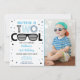Este adorável convite de aniversário apresenta óculos escuros e confete colorido.