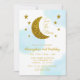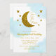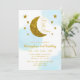 Duas da lua! segundo aniversário com lua dourada e estrelas com fundo de cor azul