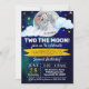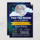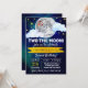 Estes bonitos convites espaciais são perfeitos para qualquer um que comemora um segundo aniversário. O design apresenta uma lua brilhante com navios de foguetes e nuvens sobre um fundo estrelado de espaço aquoso com uma redação fácil de personalizar modelo.