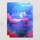 Este convite usa azul e rosa como paleta de cores principal. A profundidade no design é dada atenção fazendo com que os peixes pareçam muito distantes do ponto de vista focal principal. Efeitos de iluminação são usados especialmente na cauda da sereia, para torná-la a estrela do design