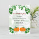Convite de baby shower temático de Halloween com abóboras pintadas em aquarela laranja e verde.