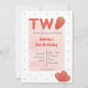 Convite de aniversário temático de morango. Letreiro brilhante com morangos. Detalhe doce de bolinhas no verso. Vermelho e rosa. Perfeito para o segundo aniversário de bebê ou criança, Edite facilmente o texto moderno e divertido. Combina com o tema de festa tutti fruity / twotii fruity ou tema berry sweet. Encontre acessórios correspondentes na loja Gemma Harlow Creations ou transfira o design para seus produtos favoritos.