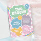 Convite de aniversário retrohippie, convite para patch pré-ppy, pastel sorri marisco dois convites de segundo aniversário de ranhura