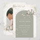 Celebre a fé, o amor e a união com o convite de casamento cristão "Dois são melhores que um", lindamente projetado em tons suaves de verde-sage e neutros elegantes. A frente do convite apresenta um design de arco gracioso, enquadrando os detalhes do seu casamento em um layout moderno e atemporal. No verso, uma moldura de arco coordenada abriga sua foto favorita, criando um lindo souvenir para seus convidados.