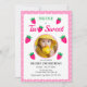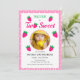 Adorável e doce aniversário de criança com morangos rosas giros e uma foto de criança. Prepare-se para criar memórias duradouras com este adorável e festivo design!
