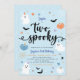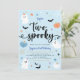 Dois convite de festas de segundo aniversário fantasma bonito azul assustador do Halloween. Design moderno do Dia das Bruxas para uma festa assustadora! Este convite de aniversário inclui teias de aranha, fantasmas, abóboras, morcegos, aranhas, folhas, cornas, estrelas e margaridas. Este convite é excelente para garotinhos!