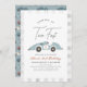 Este belo convite de segundo/segundo aniversário de dois rapazes rápidos apresenta um fundo branco com um carro de corrida azul claro. O verso apresenta um fundo azul com padrões de carros de corrida. Personalize-o para as suas necessidades. Você pode encontrar produtos correspondentes na minha loja.