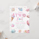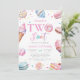 Dois doces pastel cor-de-rosa rosquinha doce convite para segundo aniversário.