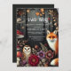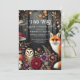 Dois temas selvagens encantaram o convite de segundo aniversário de florestas para rapazes ou raparigas. Cogumelos gigantes mágicos, animais florestais e folhas, convite pintado. Animais de floresta nas costas. Personalizar para uma garota ou um garoto. Criado como conteúdo generativo para este design.