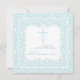 Christian Cross com anéis de casamento interligados em incisão branca contra robins elegantes espirais azuis azuis de ovos, convite de noiva quadrado sofisticado com trecho de verso Bíblia do Evangelho de Mark, 10:7,8: "Por isso, um homem deve deixar seu pai e sua mãe, e se juntar a sua esposa, e os dois se tornarão uma carne. Então eles não são mais dois, mas um." Celebre seu casamento enquanto compartilha seu amor pelo Cristo com este barato personalizado turquesa e convite branco do Compro The Christian Faith Gift.