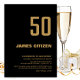 Convite Dourada 50ª Festa de aniversário moderna preta