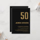 Um sofisticado convite de aniversário negro minimalista e ouro 50º.