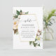 Convite de casamento adiado, floral, com peônias cor-de-rosa-claro, ervas selvagens, algodão e lírios com estrutura geométrica de ouro personalizável para suas especificidades de evento.