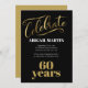 Preto elegante, ouro e convite de aniversário 60º branco para mulheres.