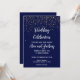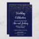 Este convite de celebração de marinho e confete de ouro é perfeito para um casamento simples e elegante. O design apresenta faux gold glitter confetti em um fundo azul marinho com caligrafia branca clássica. QSD107