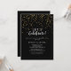 Este confete dourado | o convite de festas de celebração de vamos pretos é perfeito para um noivado simples, clássico, solteiro, aposentadoria ou qualquer evento ou festa. O elegante design apresenta falso confete de brilho dourado sobre caligrafia negra e minimalista com um moderno sentimento de vassoura.