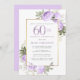 Honra uma mulher especial com esta elegante e feminina 60ª Convite de aniversário. O 60º está escrito em texto roxo grande. A comemoração de aniversário segue. O nome do convidado é também em letras de maiúsculas roxas. O resto do texto é cinza de pomba mole. Os detalhes da comemoração do 60º aniversário são cercados por uma moldura de ouro chico que é decorada com rosas roxas e folhas verdes sábias. Enquanto é um design tradicional, a folhagem botânica aberta e arejada e o texto lhe dão uma vibração contemporânea. O convite de volta é um roxo suave. Infelizmente, os 60 algarismos não são editáveis. Se precisares de mais um ano, terei todo o prazer em fazer um design personalizado para ti.