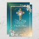 Convite Dourada Cruz Floral Rosas Primeira Comunhão Santa