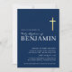Convite DOURADA CRUZ sagrada batismo sagrado moderno azul