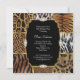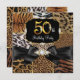 Impressão animal selvagem mista 50º Convite de aniversário. Design de arco de diamante preto elegante. Por favor, note: todas as imagens planas! Não têm joias reais!