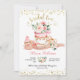 Convite de festas de chá, cor-de-rosa, com Chá de panela floral Dourado