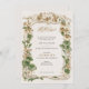 Esta fantástica suíte de convites de casamento islâmicos exude luxo e elegância, apresentando um esquema rico de ouro e marfim. A frente do convite é enfeitada com uma arca floral lavada em tons de ouro metálico, marfim e verde-oliva, moldando a delicada caligrafia árabe de "Bismillah" e os detalhes de seu dia especial. Os elementos botânicos possuem uma paleta sofisticada, incluindo creme, ouro e verde-muda, trazendo um toque orgânico à design. O verso do convite carregar um monograma refinado, entrelaçando as iniciais do casal dentro de uma coroa de delicado ouro e verde, mantendo o tema elegante. Criado para casais que apreciam a beleza da arte islâmica e a graça da natureza, este convite é um anúncio perfeito de sua união.