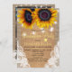 Modelo de convite para na moda de festa de formatura de campo russo para bétula sobre fundo de burlap faux bege com um grande buquê de girassóis de ouro amarelo, cordas de luzes brilhantes brancas e rendas. +++++++++++++++ Fácil de personalizar com seus detalhes e foto personalizada! ++++++++++++++++ O convite é adequado para festas de formatura de jardim ao ar livre/quintais rústicos.