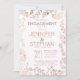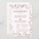 Rosa de ouro elegante, moderno e chic, e padrão floral brilhante trendy, convites para festas de noivado. Este design clássico e sofisticado é perfeito para o casal clássico, de tendências e na moda de casamentos. Personalize com sua própria mensagem na frente e um monograma personalizado na parte de trás. Todas as impressão de fotos.