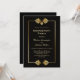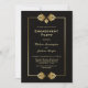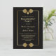Um convite de festa de noivado simples, preto e ouro, de classe moderna.