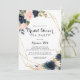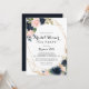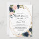 Este convite de festas de chá de chá de panela floral geométrico de ouro é perfeito para um chá de casamento moderno. O design apresenta belas flores azuis escuras, azuis, marinhos, rosa, pinceladas, douradas e folhagem verde pintadas manualmente, amontoadas em buquês elegantes.
