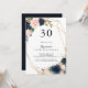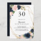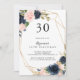 Este convite de festas floral de inverno geométrico de ouro é perfeito para uma festa de aniversário moderna. O design apresenta belas flores azuis escuras, azuis, marinhos, rosa, pinceladas, douradas e folhagem verde pintadas manualmente, amontoadas em buquês elegantes.
