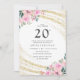 Convite Dourada Floral Rosa Rosa Vinte e 20 de Aniversário