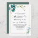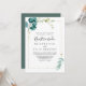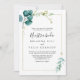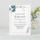 Este convite de casamento para a nuestra tropical floral de ouro é perfeito para um casamento de destino. O design apresenta predominantemente folhagem verde-aquosa pintada manualmente, acoplada a flores douradas, enfeitando uma elegante moldura geométrica.