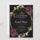 Convite Dourada Frame Burgundy Rosas Black Quinceañera