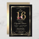 Dourada tiara brilhante, moldura dourada e convite de aniversário de borda floral Sweet 16.