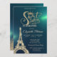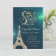 Convite Dourada Glitter Tiara, Ouros Torre Eiffel Verde