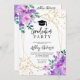 Classe de 2023! Um primavera chic, roxo de verão, lavanda e aquarela floral verde e tipografia de confete dourada convidada com flores pintadas à mão, ramos de folha de aquarela verde com estrutura de terrário geométrico dourado em fundo branco, adicione sua foto no fundo