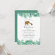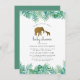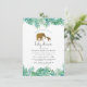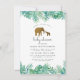 Um tema moderno do chá de fraldas, com uma falsa mãe de ouro e um elefante bebê enquadrado pela folhagem de aquarela tropical. Estes convites revertem para uma bela cor verde da selva.