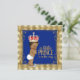 O chá de fraldas do príncipe étnico com fundo azul e ouro real e um adorável príncipe pequeno vestindo coroa real em um lindo fundo azul e ouro real. Este convite para chás de fraldas reais, azul e ouro, de ornamentado é facilmente personalizado para o seu evento, adicionando detalhes do seu evento, estilo de fonte, tamanho de fonte e cor e texto.